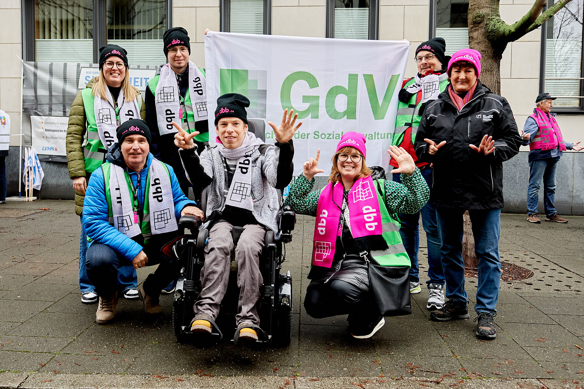 Bei der dbb-Protestveranstaltung in Potsdam am 15.01.2026 anlässlich des Auftakts zur 2. Runde der Tarifverhandlungen zum TV-L war die GdV mit den stellvertretenden Bundesvorsitzenden Nadine Sohr (Berlin) und Martin Peters (Thüringen) sowie Detlef Mangler (Landesvorsitzender Brandenburg) und Franz Ifland (stellv.